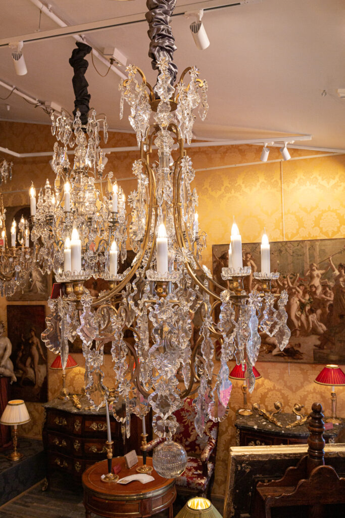 In fine original condition. It is professionally wired for electricity, European standards, and possibilities of setting to the American standard on request.
