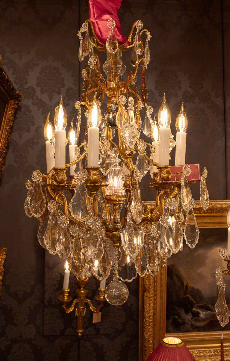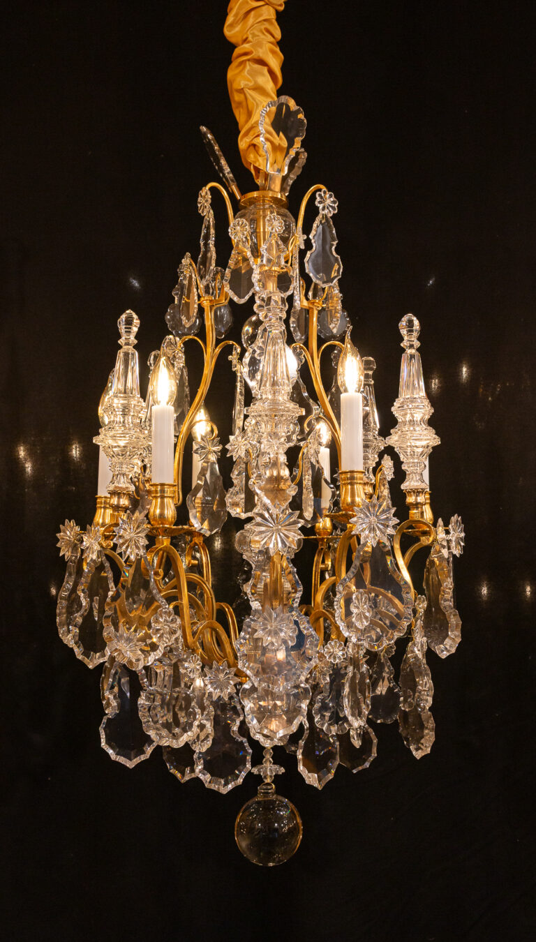 Signé par Baccarat Lustre de style Louis XV en Bronze Doré et Cristal taillé, vers 1890 Un élégant lustre de style Louis