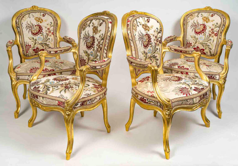 Georges Jacob reçu Maitre en 1765 Quatre fauteuils en bois doré d’époque Louis XV vers 1765-1770 De qualité Musée, les sièges