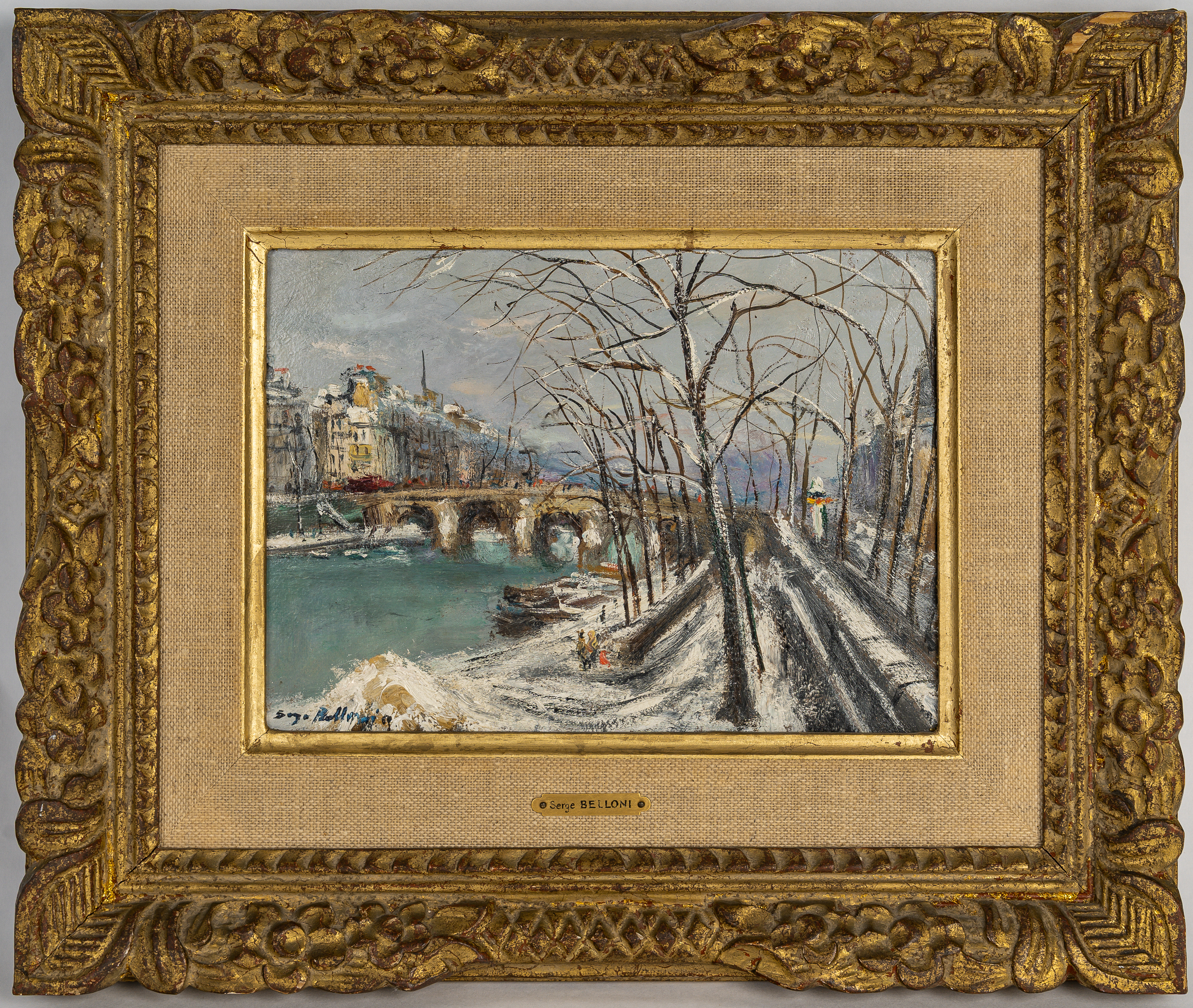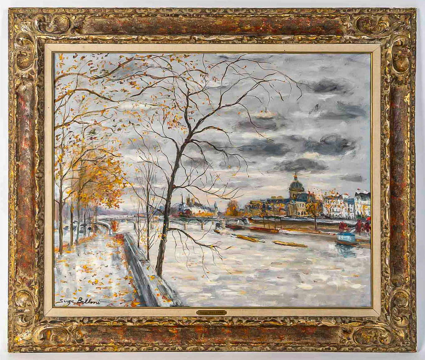 Serge Belloni (1925-2005) – Paris Ses Quais et l’Arbre sur la Seine huile sur toile vers 1980 Description : Serge Belloni, surnommé