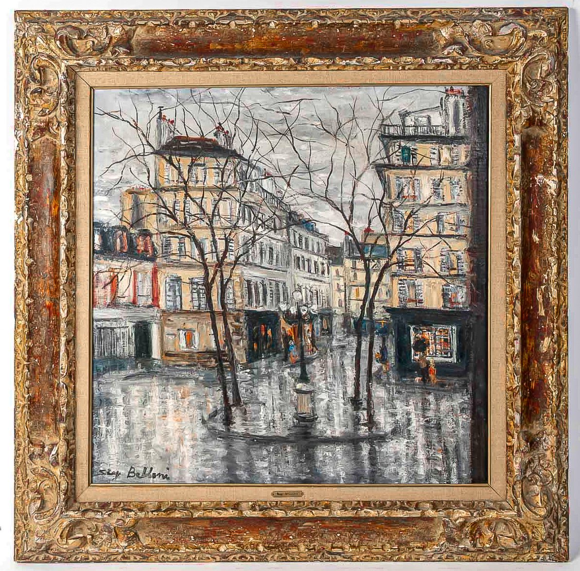 Serge Belloni (1925-2005) – La Place Furstenberg sous la Pluie huile sur toile vers 1970 Description : Serge Belloni, surnommé “Le Peintre