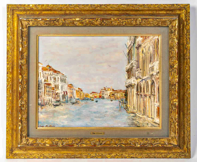 Serge Belloni (1925-2005) – Venise et ses Palais sur le Grand Canal huile sur panneau vers 1980 Description : Serge Belloni, surnommé