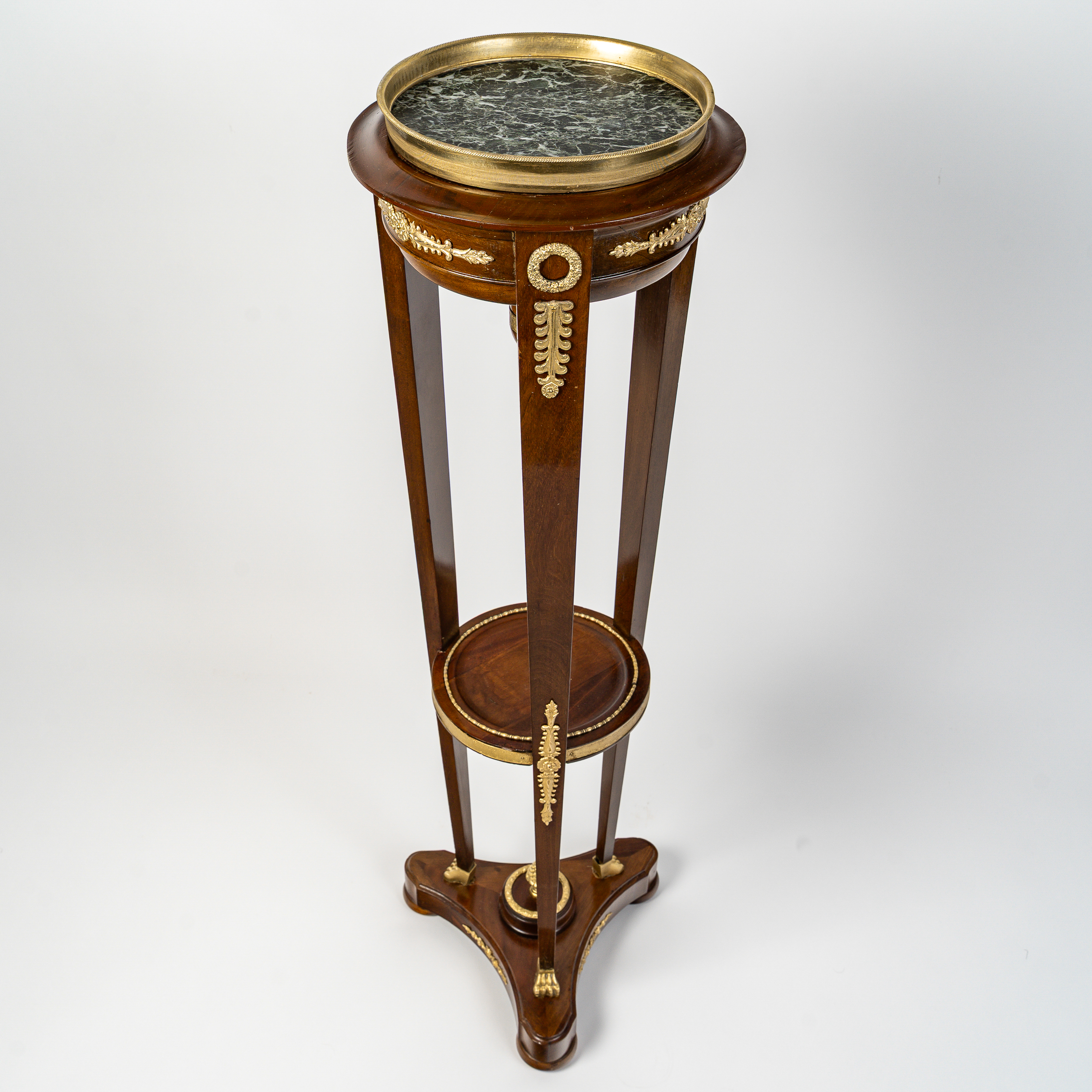Sellette en acajou et placage d’acajou, dessus de marbre Vert de Mer, de style Empire vers 1870 La sellette tripode de forme