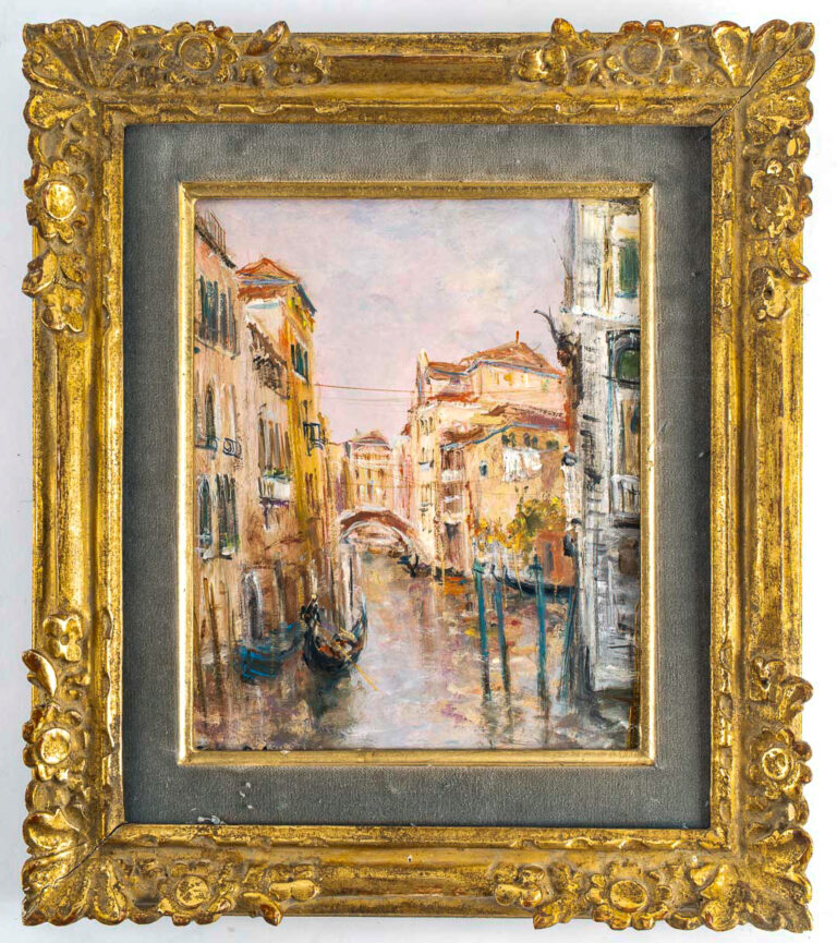 Serge Belloni (1925-2005) – Venise Petit Canal au Jardin Fleuri huile sur panneau vers 1970 Description : Serge Belloni, surnommé “Le Peintre