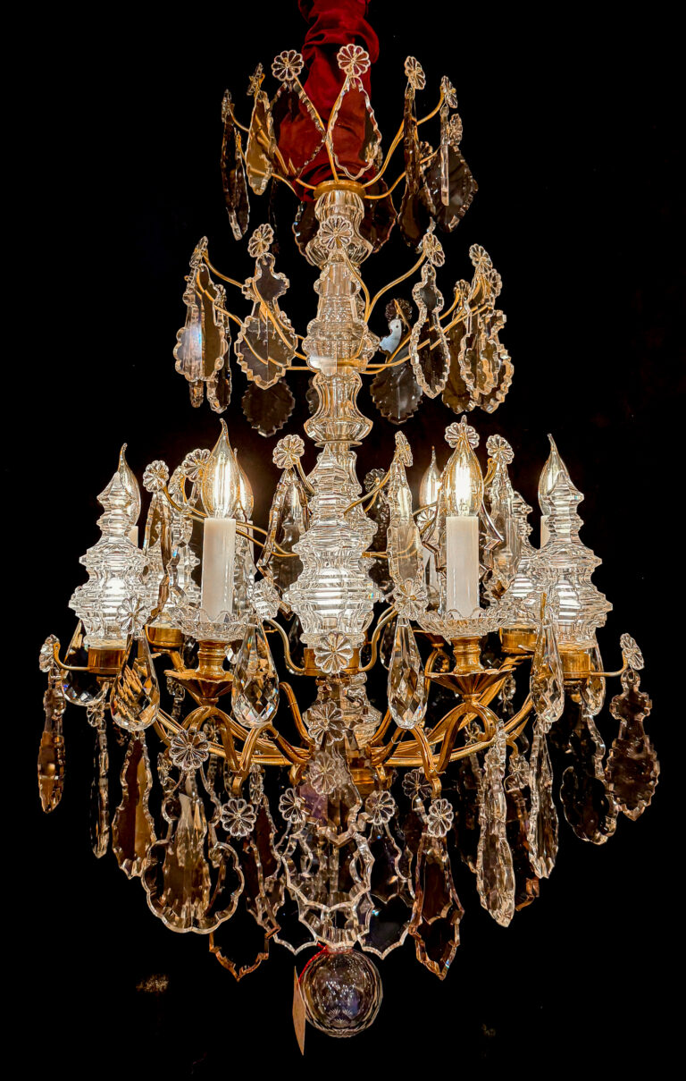 Lustre signé Baccarat de style Louis XV en bronze doré et décor de crystal taillé vers 1880-1890 Un élégant et décoratif