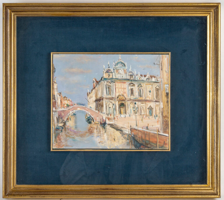 Serge Belloni (1925-2005) – Venise Vue de l’Hôpital San Giovanni Huile sur Toile vers 1980 Description : Serge Belloni, surnommé “Le Peintre