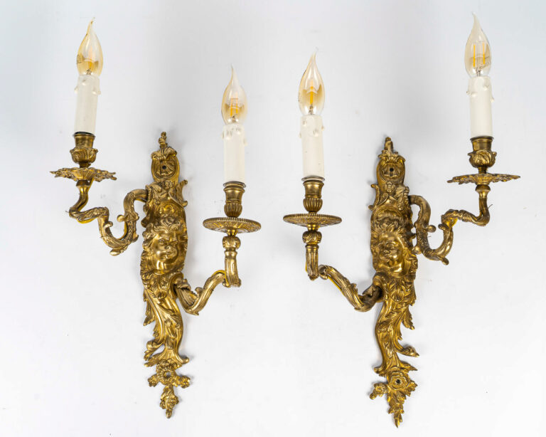 Paire d’appliques dite Aux Zéphyrs en bronze ciselé et doré XIXème siècle Inspirée d’un modèle iconique du célèbre bronzier Jean-Joseph de Saint-Germain,
