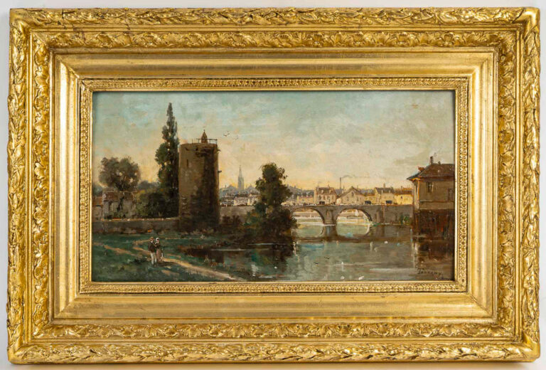 Gustave Mascart (1834-1914) Promenade bucolique au pied de la Tour à Poudre de Bruges huile sur bois vers 1900 Description : La