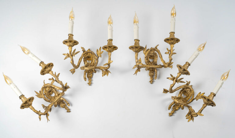 Set of four Chiseled Bronze two-light sconces Italy circa 1850