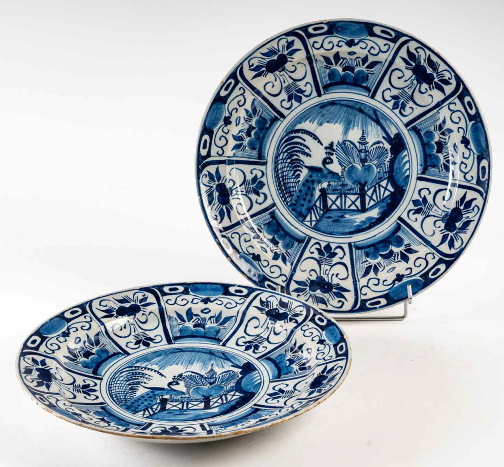 Paire de grands plats en faïence de Delft du XVIIIème siècle