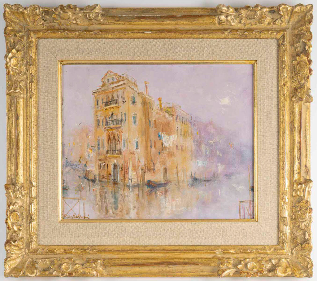 Ce charmant tableau nous transporte à Venise, avec une vue d’un Canal dans la brume, on peut y voir la façade d’un Palais. Belloni affectionnait passer l’automne et le début de l’hiver à Paris, où les arbres dénudés révélaient l’architecture et l’âme authentique de la ville. Et le reste de l’année à Venise pour y capturer cette lumière si particulière.