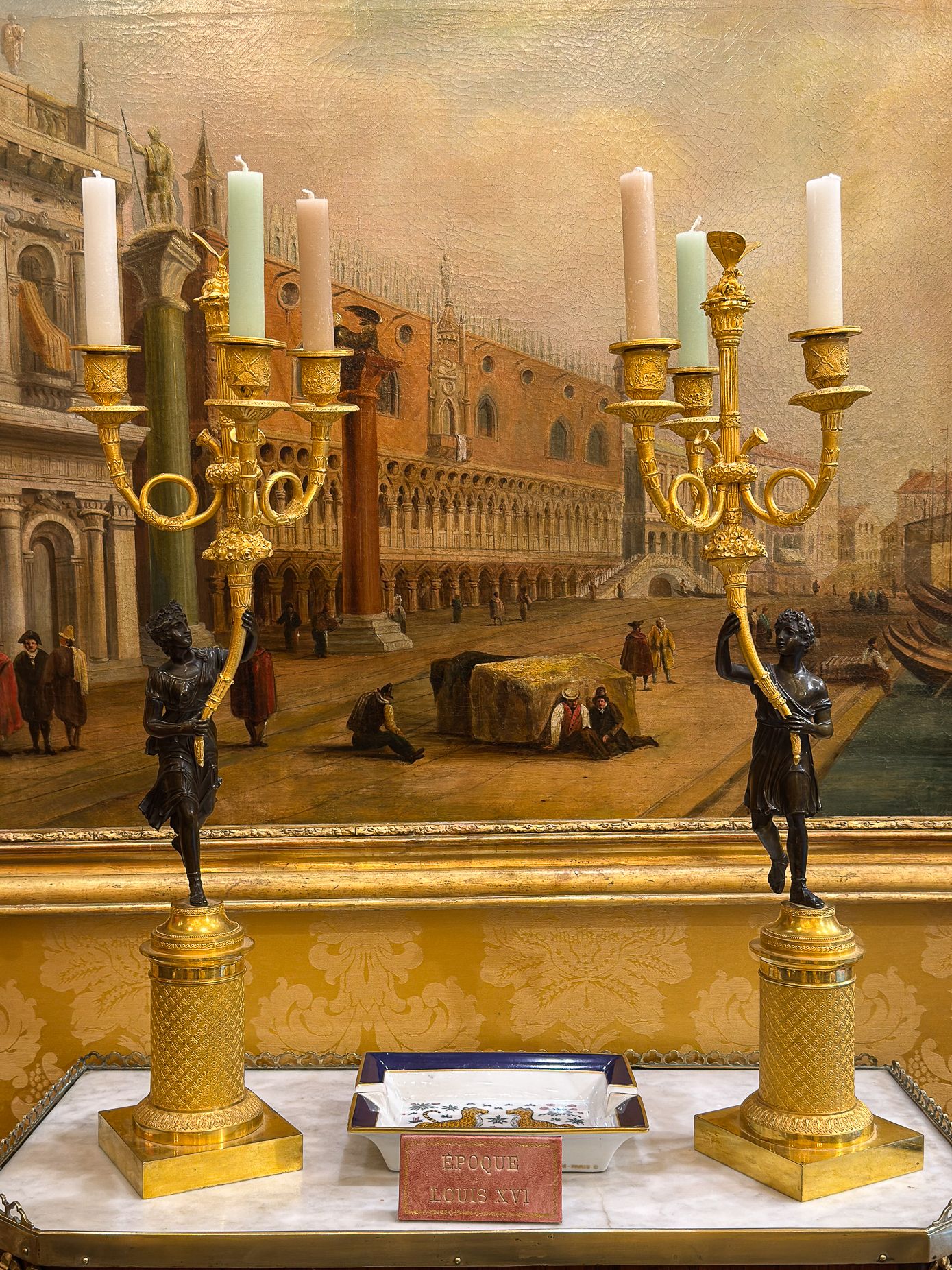 Très bon état de conservation. Présentés dans leur patine d’époque, ces candélabres conservent des usures légères, témoins de leur authenticité et de leur charme.